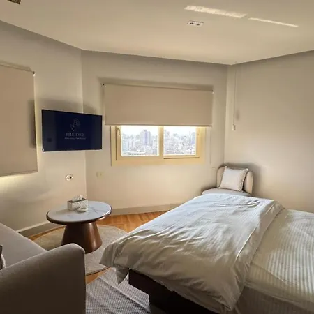 El apartamento The Five - A01 With City View & Sunset From Above El El Cairo ofrece acceso rápido a lugares turísticos como el Korean Cultural Center, que se encuentra a tan solo 5 minutos a pie.